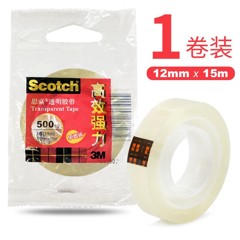 3M Scotch思高500透明胶带高效强力文具胶带12mm小胶纸18mm财务用品学生玻璃胶办公胶带条不变黄官方旗舰店