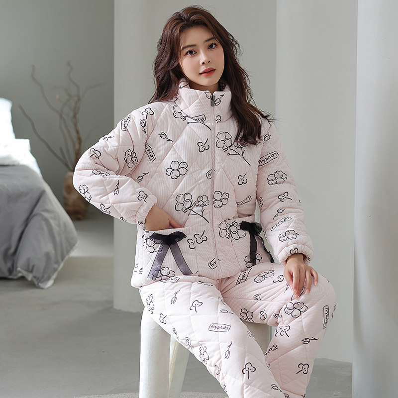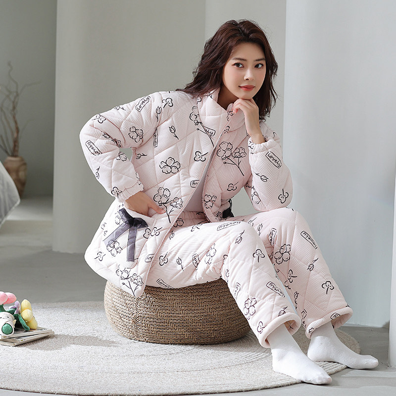 冬季睡衣女士保暖加厚加绒三层夹棉特厚棉袄冬款套装家居服可外穿