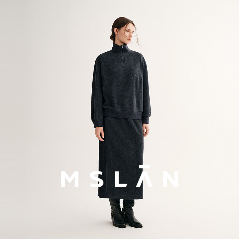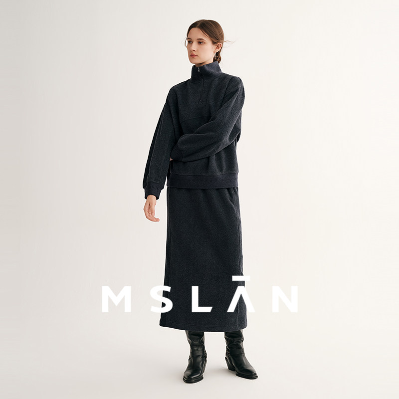 MSLAN摇粒绒套装 懒人锁温立领保暖休闲卫衣半身裙两件套