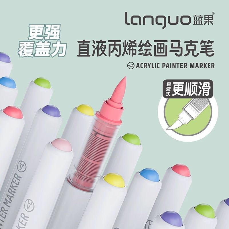 蓝果直液式丙烯马克笔软头新一代81色绘画全套学生美术专用36色不透色可叠色智能控墨水彩笔可水洗24色画画笔