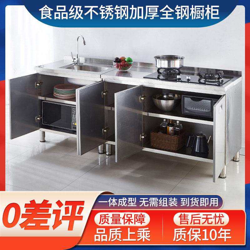 家用灶台柜橱柜一体餐边柜橱柜置物柜 碗柜不锈钢厨房橱柜