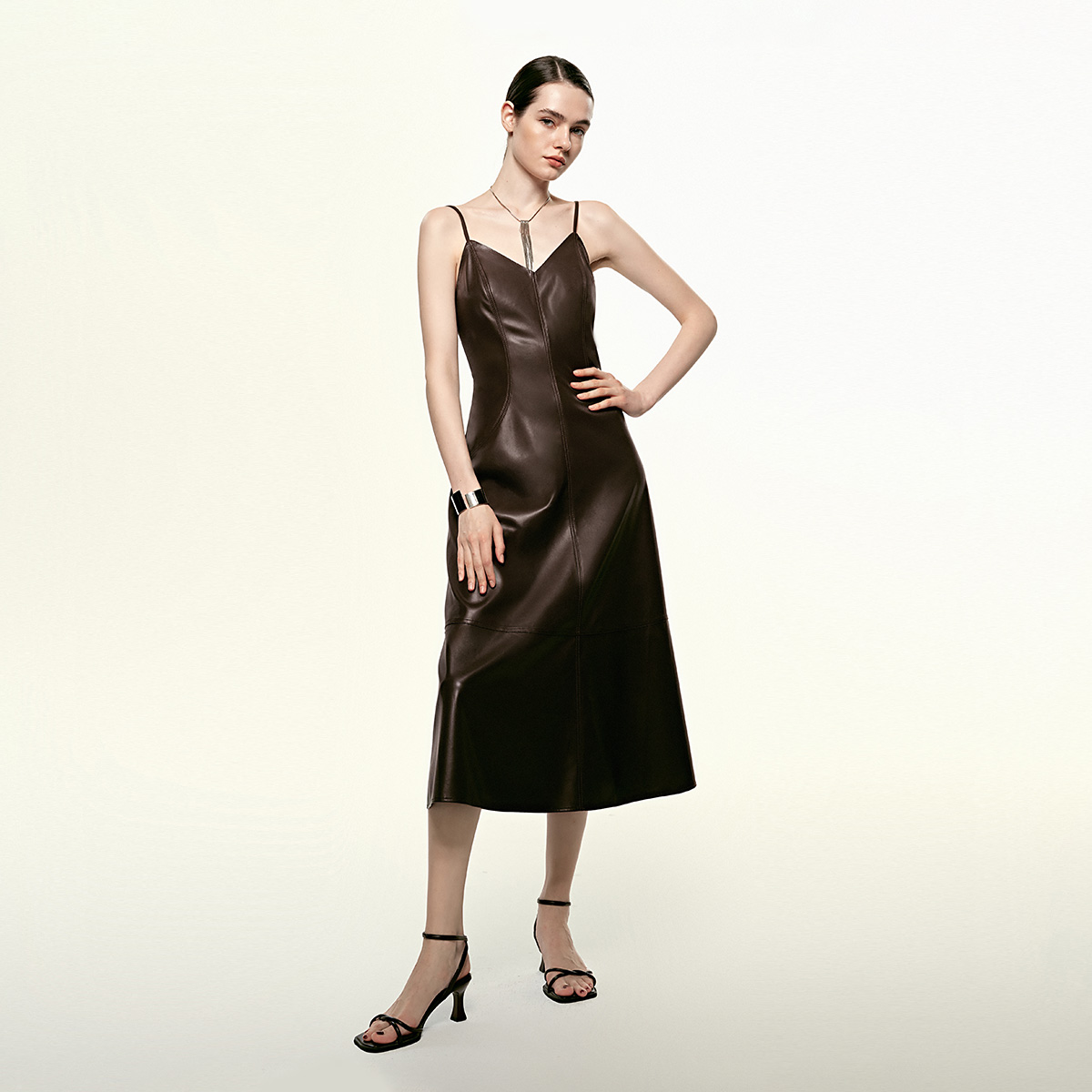Vero Moda连衣裙秋冬PU连衣裙吊带连衣裙修身显瘦美拉德32437A059
