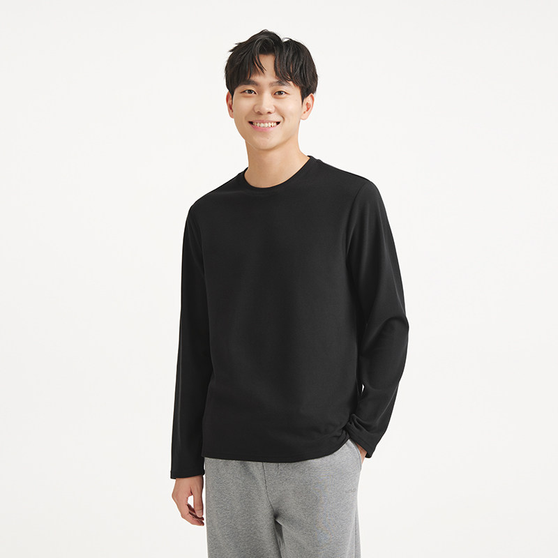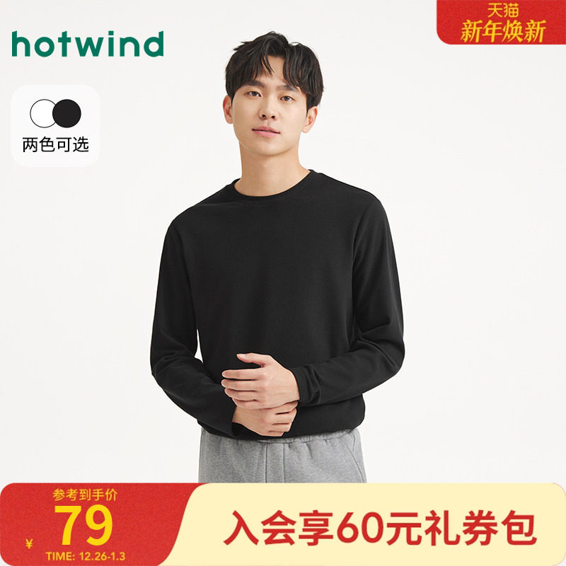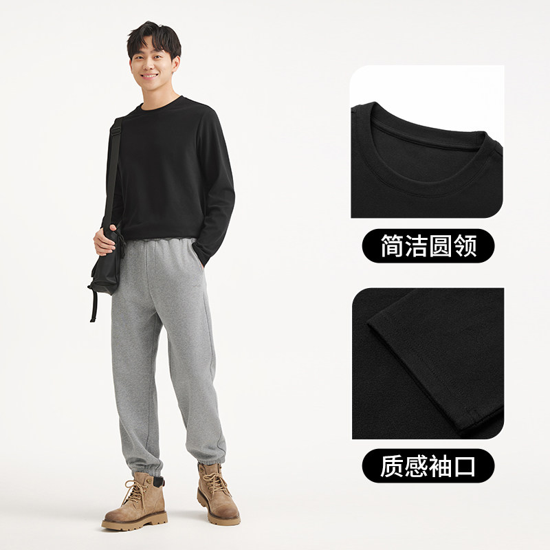 热风2025年冬季新款男士基础圆领纯色长T简约百搭