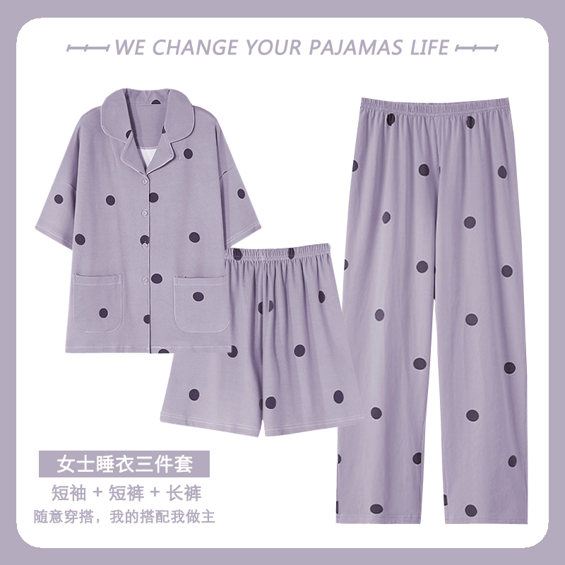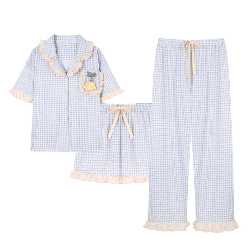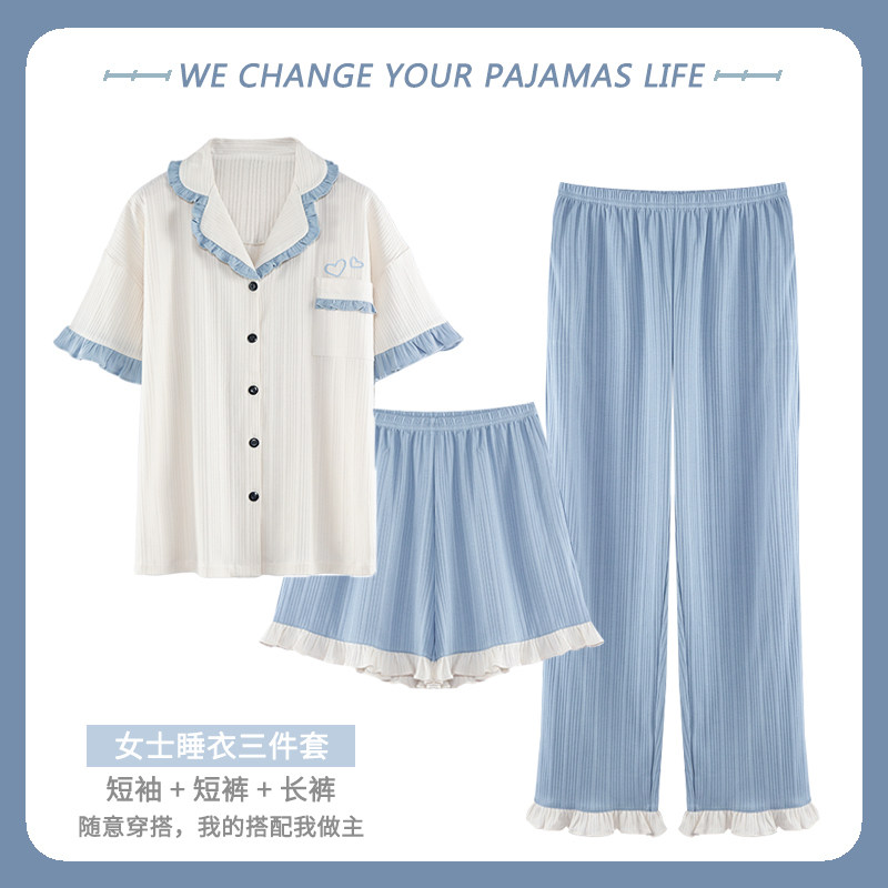 纯棉睡衣女夏季短袖长裤三件套装甜美网红薄款可外穿高级感家居服