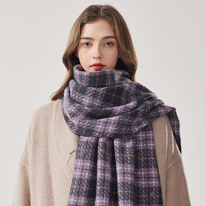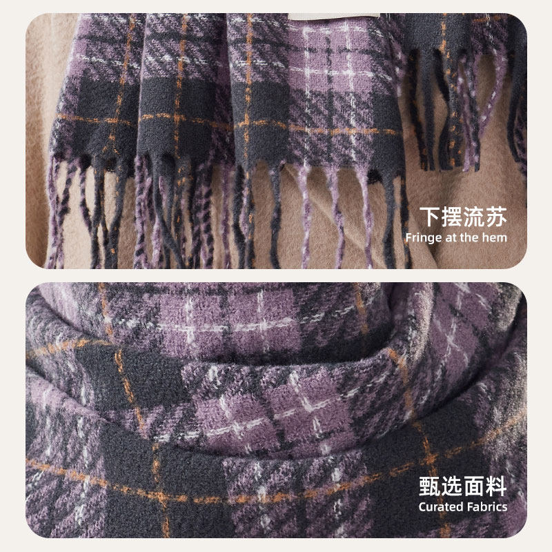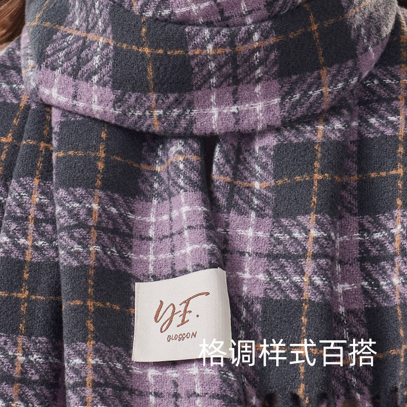 稻草人2025新款紫色格纹围巾女保暖高级感加厚百搭复古围脖冬披肩