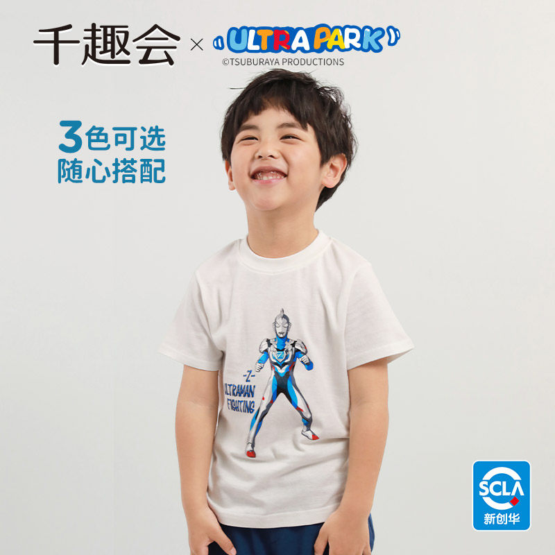 千趣会夏款奥特曼联名款时尚潮酷纯棉柔软透气男女童短袖T恤