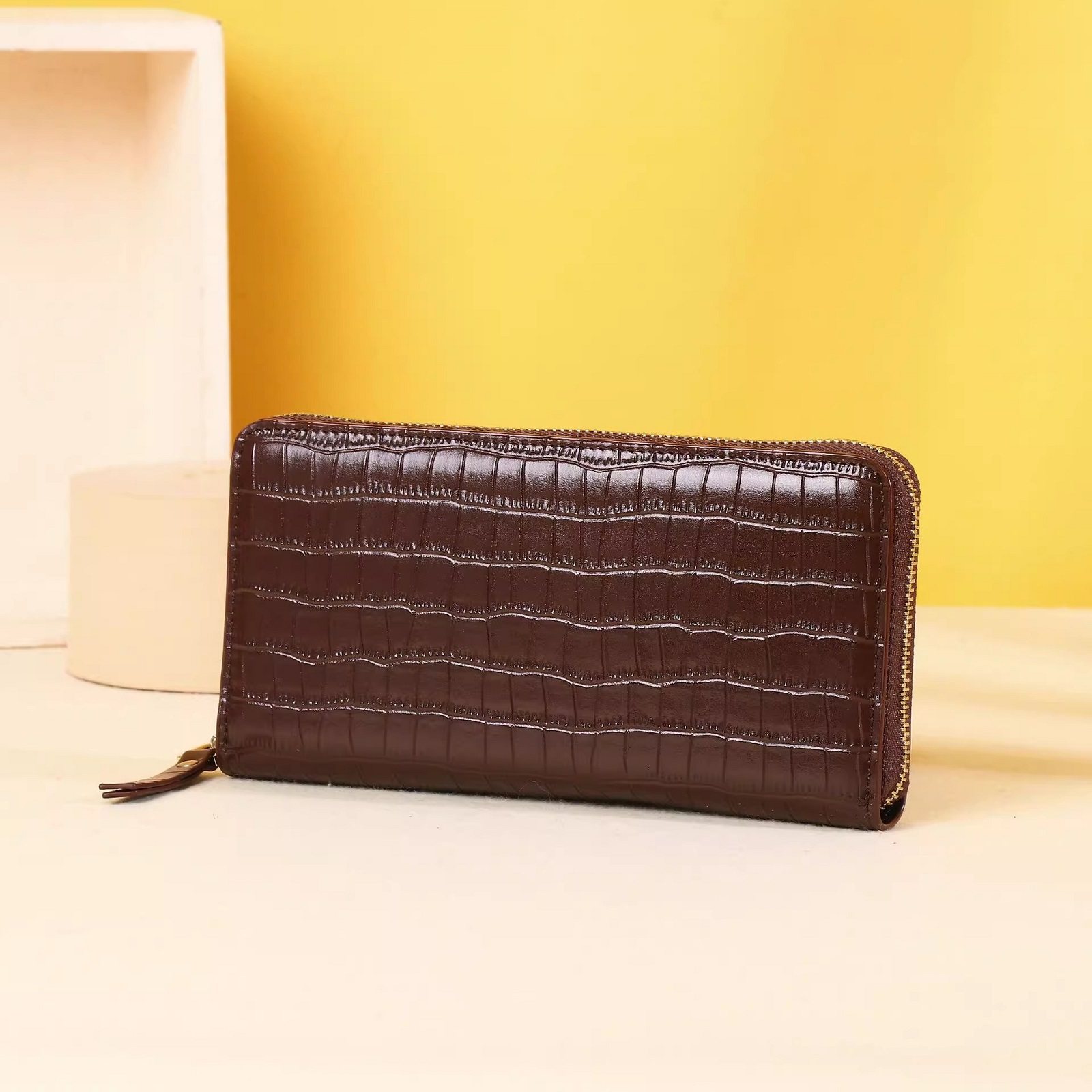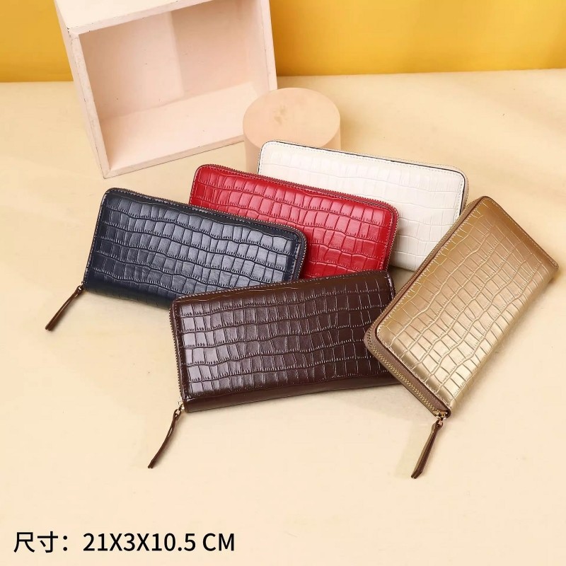 新款女士钱包中长款拉链手拿包鳄鱼纹欧美风时尚真皮钱夹零钱