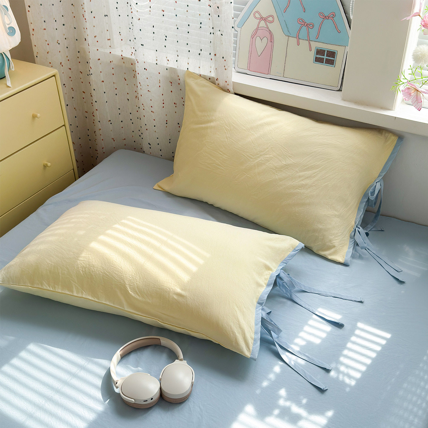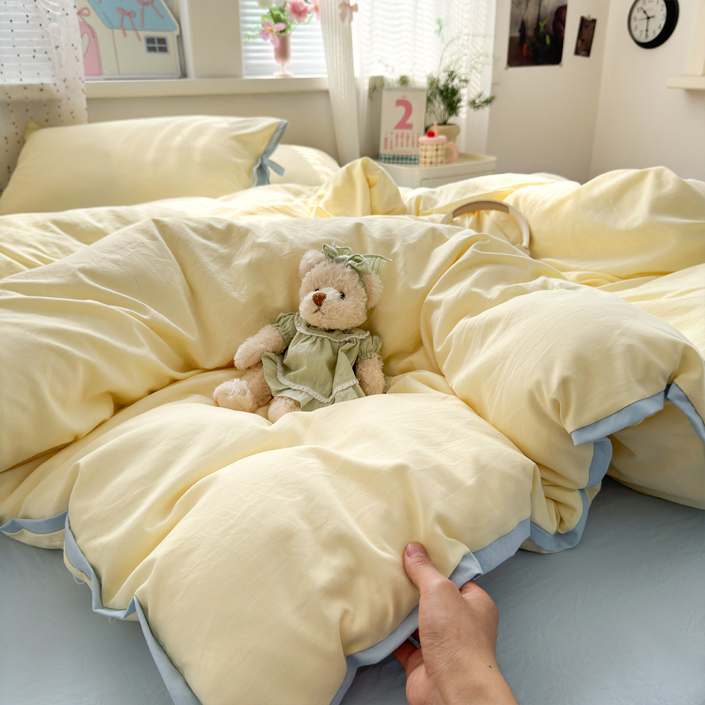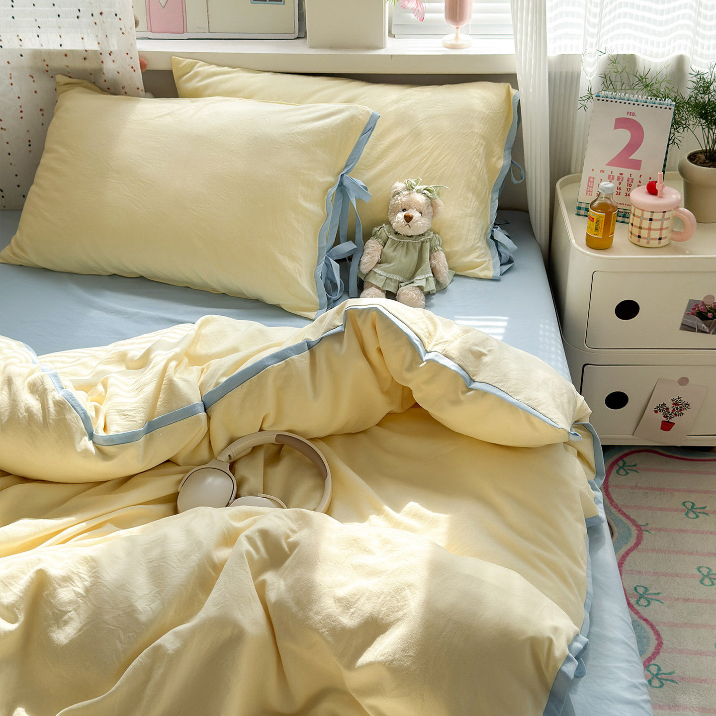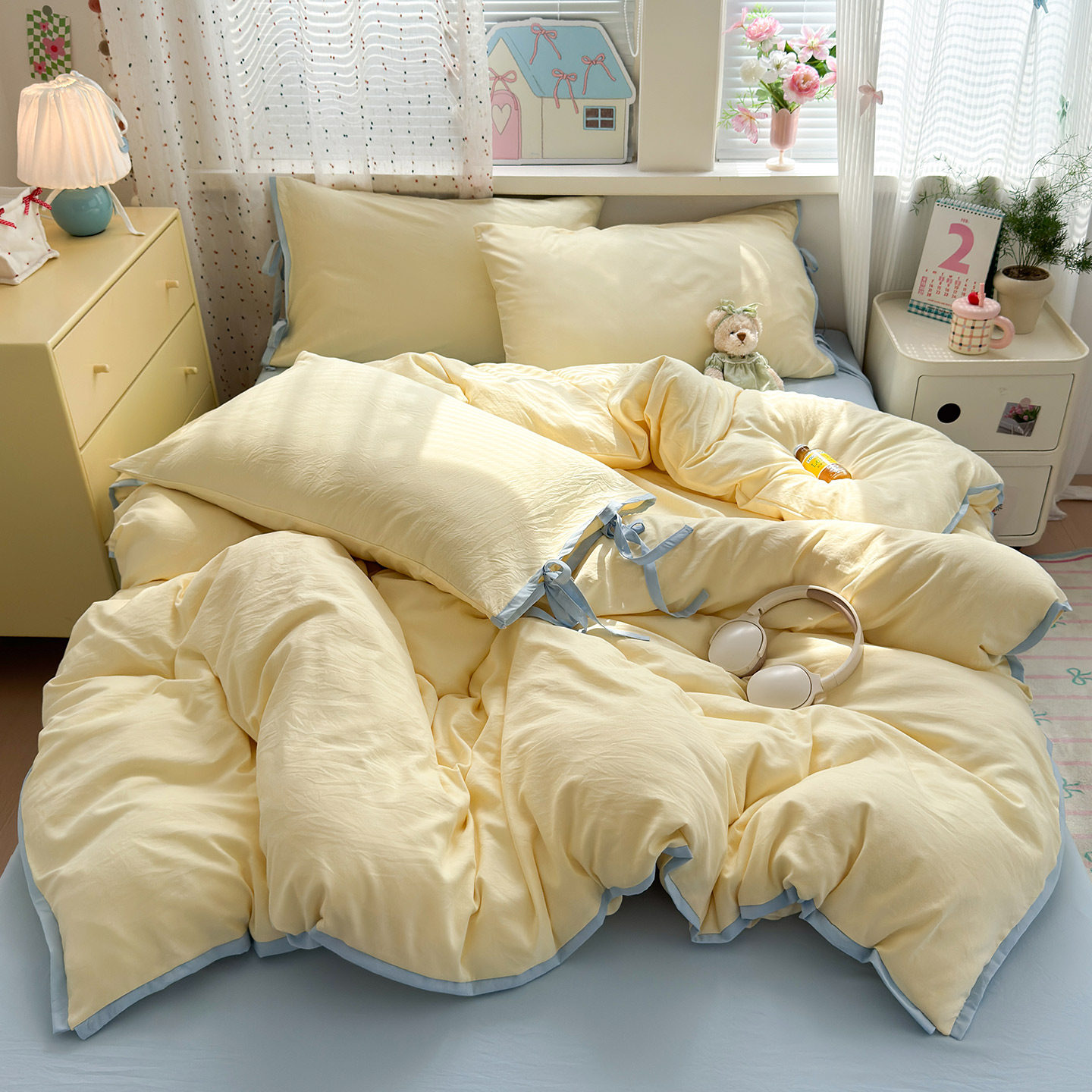 A类撞色绑带床上四件套纯棉全棉床单被套被罩学生宿舍床上三件套4