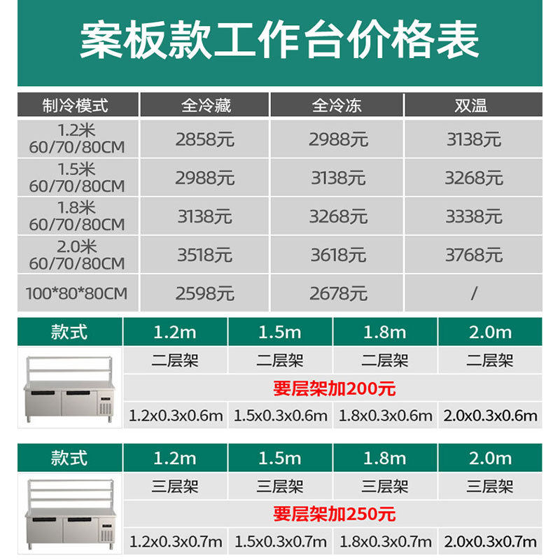 猛世砧板柜冰箱带案板式厨房不锈钢冷藏柜冰柜案台商用冷冻工作台