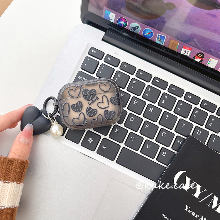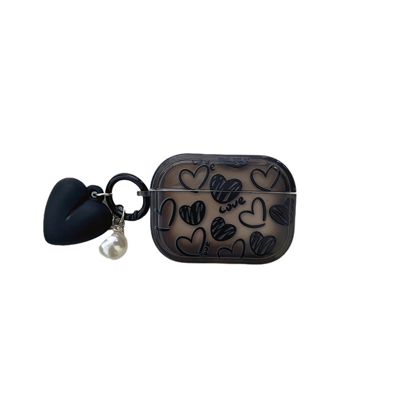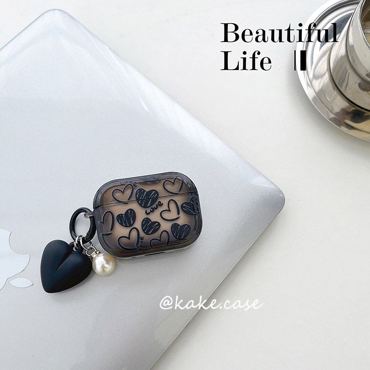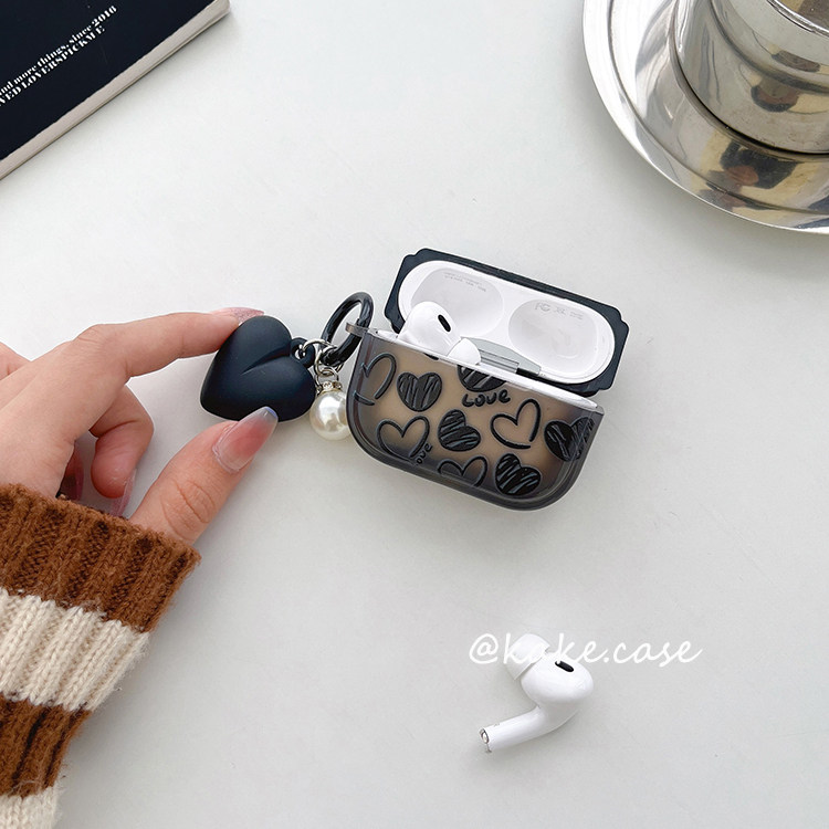 时尚黑色爱心airpodspro2保护套苹果蓝牙耳机壳2代透明黑色3代硅胶pro女潮4代套全包防摔新款高级感日韩软壳1