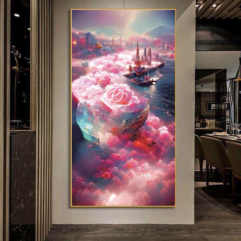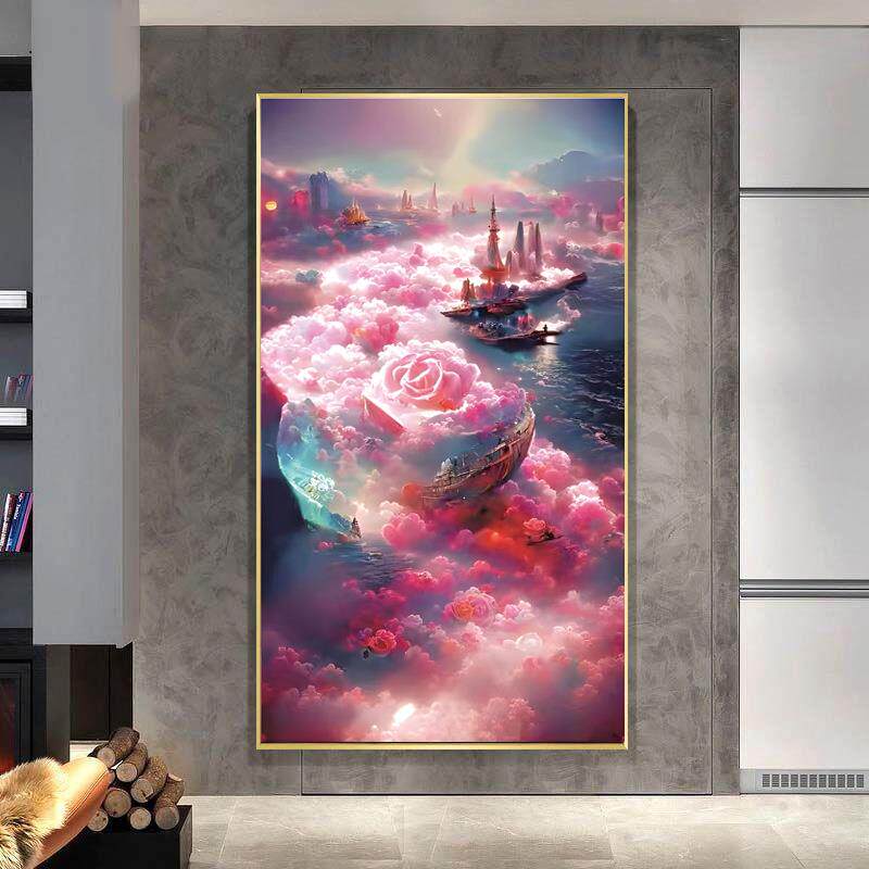 玫瑰云海十字绣2024新款线绣客厅小幅卧室大格棉线自己绣手工小件