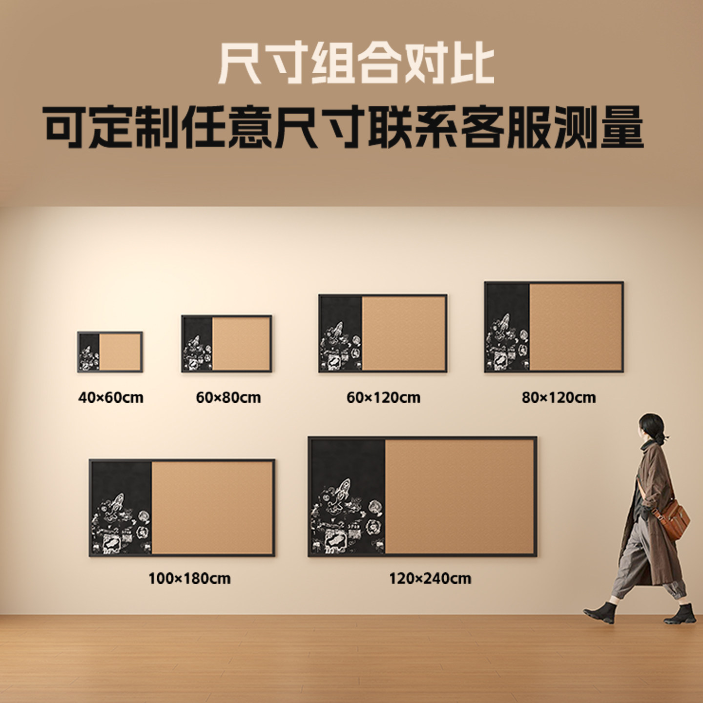 实木框磁性白板黑板软木板强磁吸留言展示墙背景墙家用画板组合