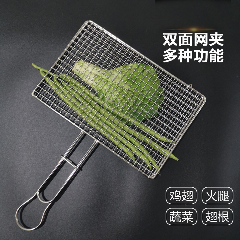 不锈钢烧烤网夹子烤蔬菜韭菜夹板烤肉加密架子烤鱼夹烧烤工具用品