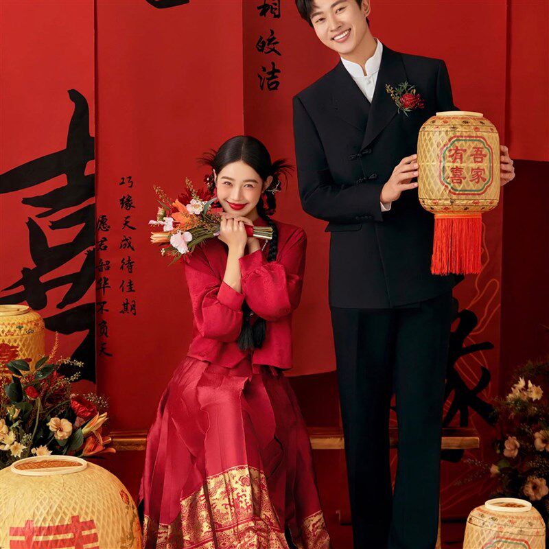 中式喜嫁秀禾婚纱摄影道具古风影楼拍照装饰创意竹编喜字灯笼摆件