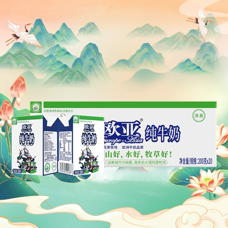 绿色食品云南欧亚高原全脂纯牛奶200g20盒整箱早餐营养高原