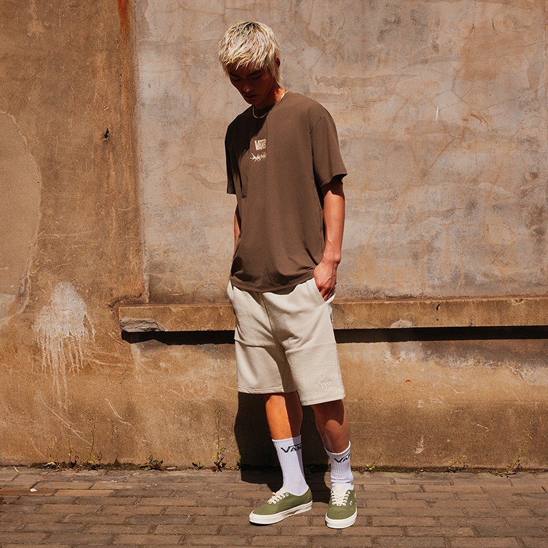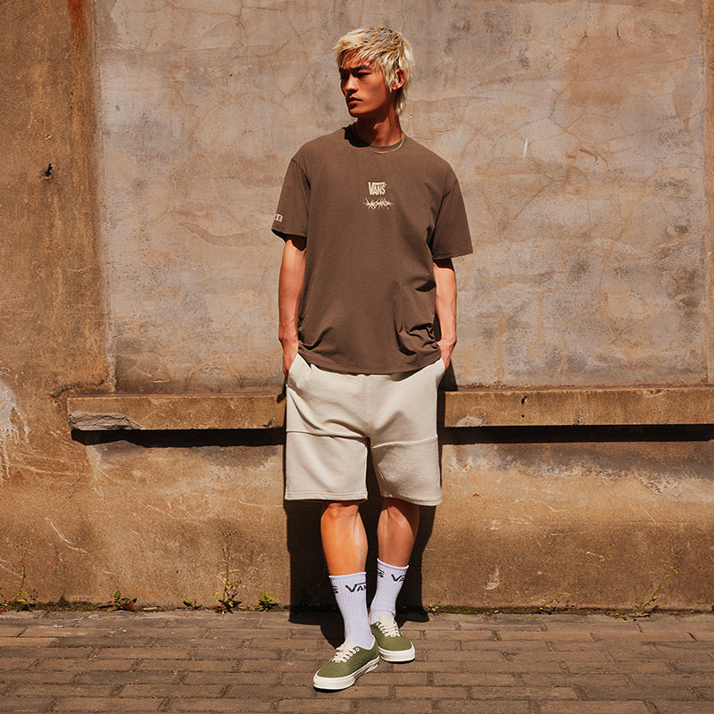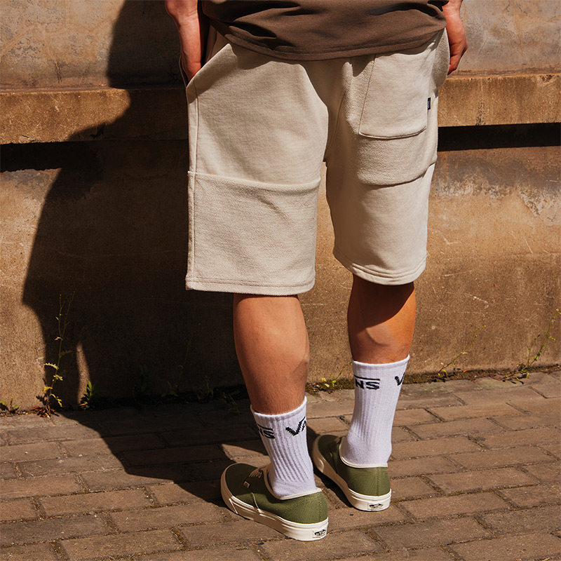 Vans范斯官方 男女情侣针织短裤温柔燕麦色质感拼接