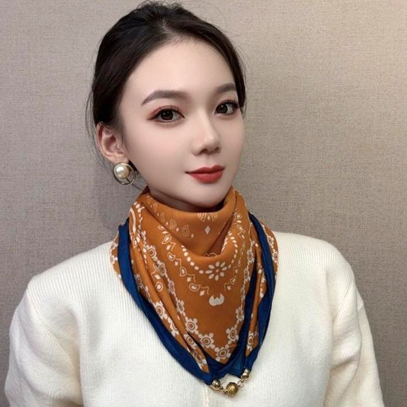 2025新款高级感三角巾时尚磁吸扣小方巾秋冬保暖围脖围巾女丝巾女