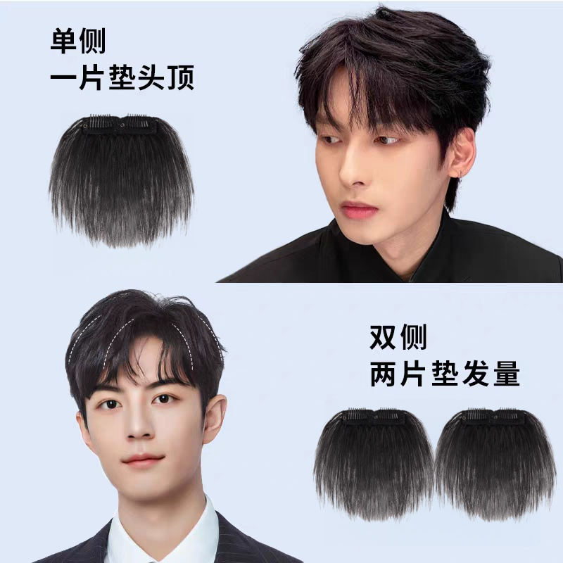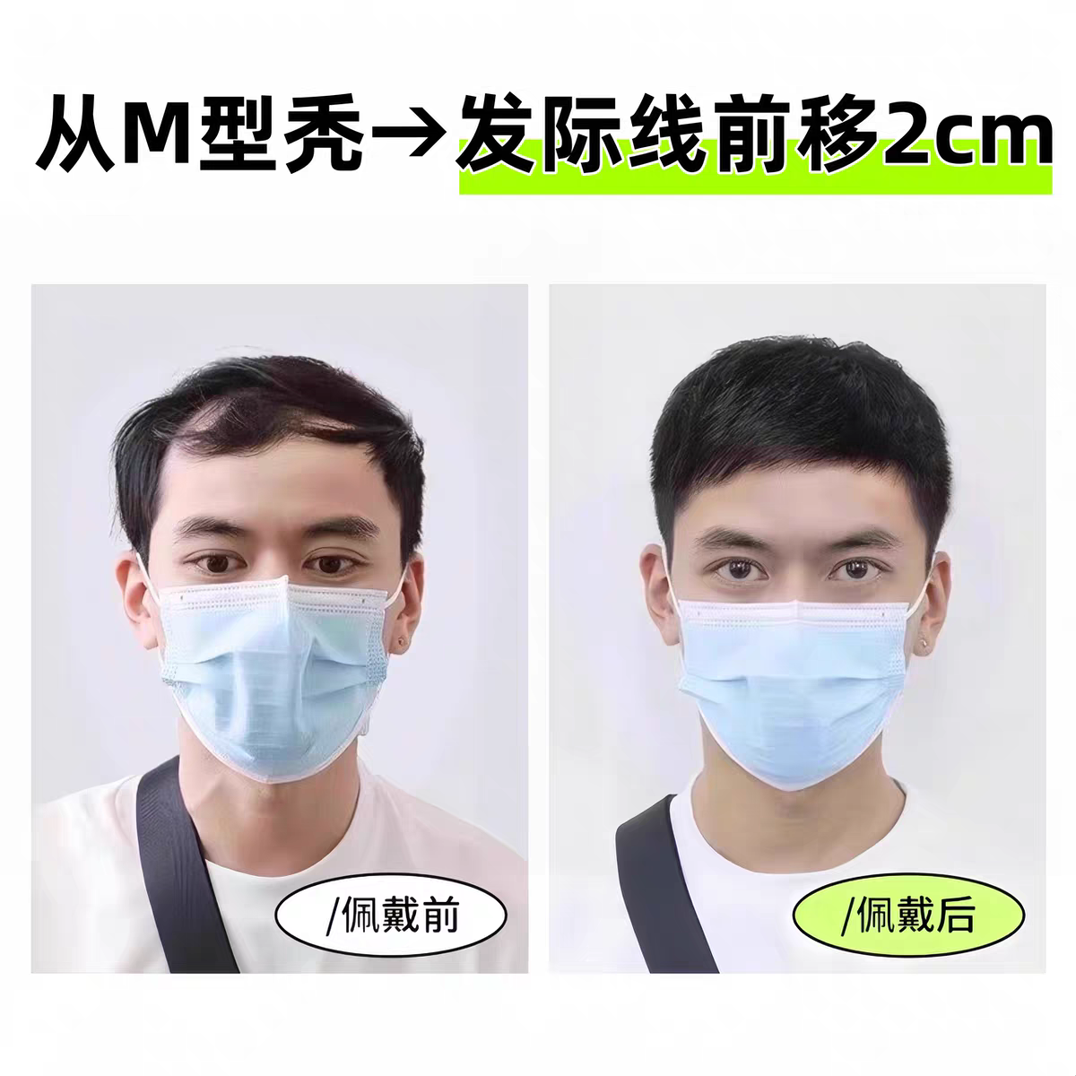 发际线假发片男士卡子款前额m型刘海假发贴全真发男款男生补发片