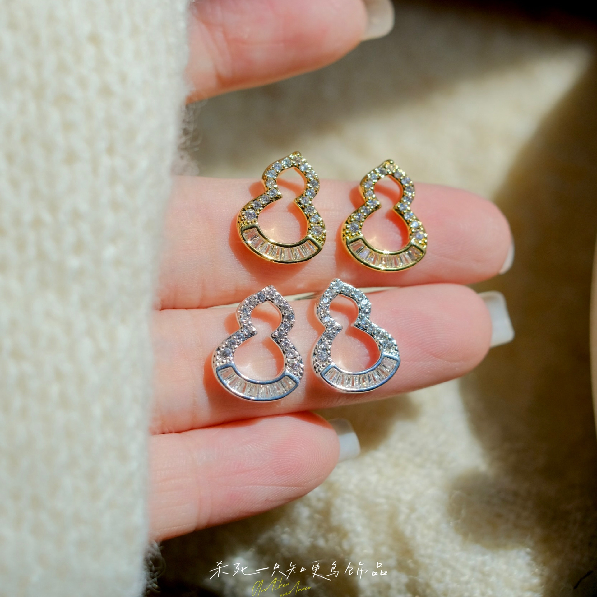 《福禄》精致复古轻奢国风新中式满钻葫芦耳钉耳环耳夹2025新款女
