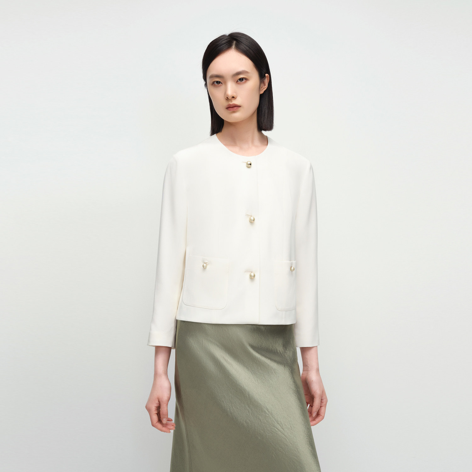 【重磅真丝】OVV2025春夏新款女装22MM弹力双绉短款夹克