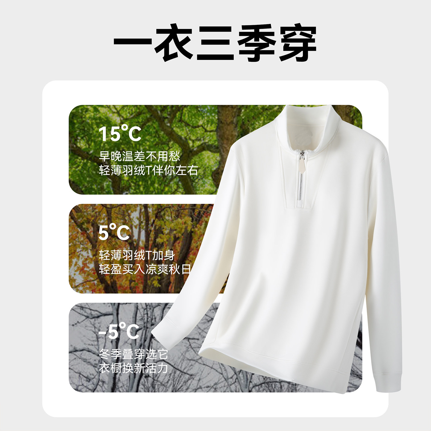 猫人小白t鹅绒羽绒T恤2025冬季新款情侣半拉链外套加厚打底衫上衣