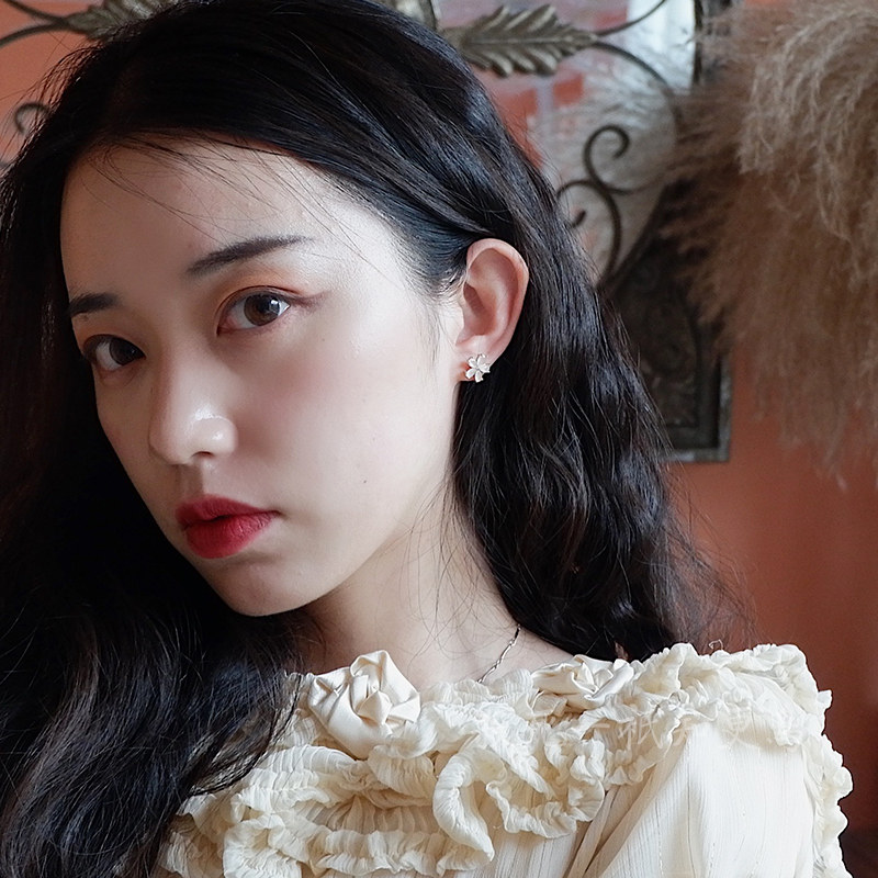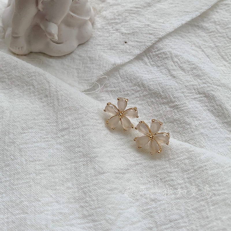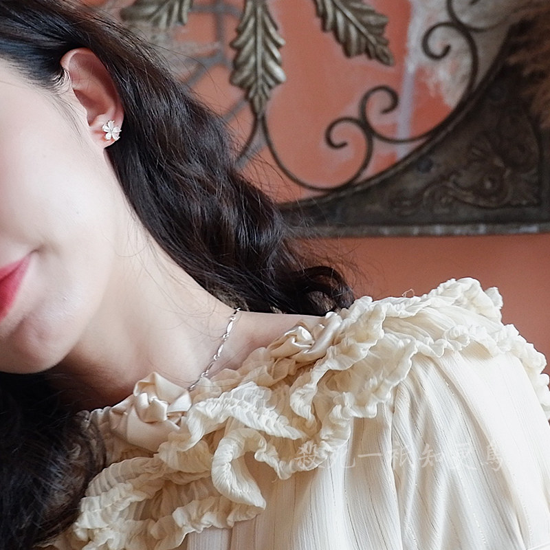 「知更鸟」樱花树下 包邮原创手作极简超仙女清新花朵925纯银耳钉