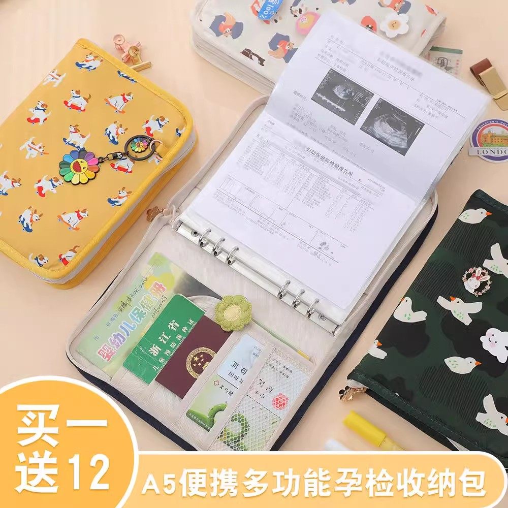 A5孕妈孕检报告单子手提包怀孕妈妈档案建档检查单B超资料A4孕妇孕期产检体检看病文件手册活页收纳册包袋夹