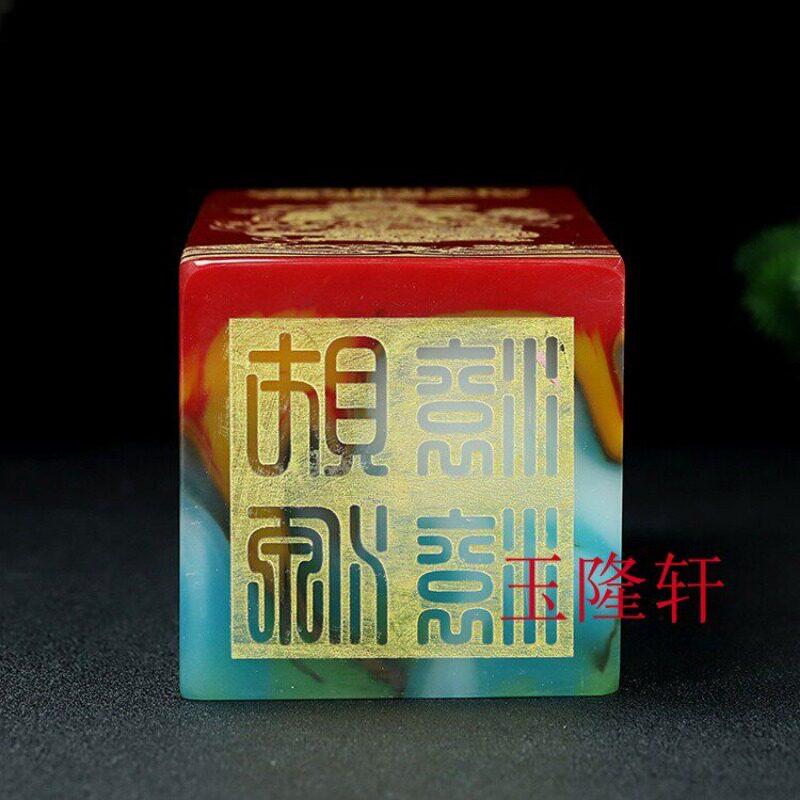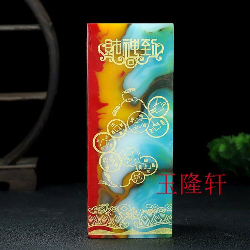 新疆和田玉大号印章摆件天然玉石彩玉财神印章七彩玉招财进宝摆件