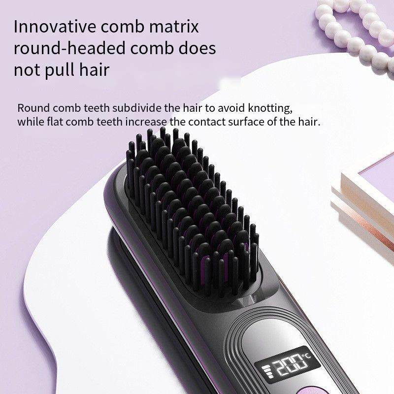 新款家用无线直发梳数显充电式迷你旅行护发直发器两用直发卷发梳