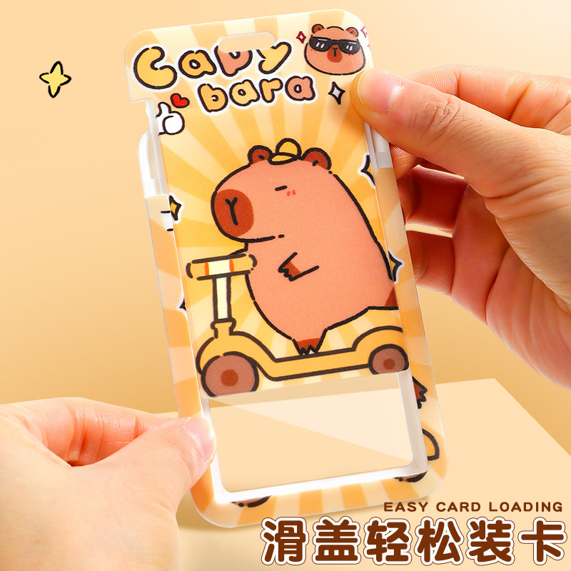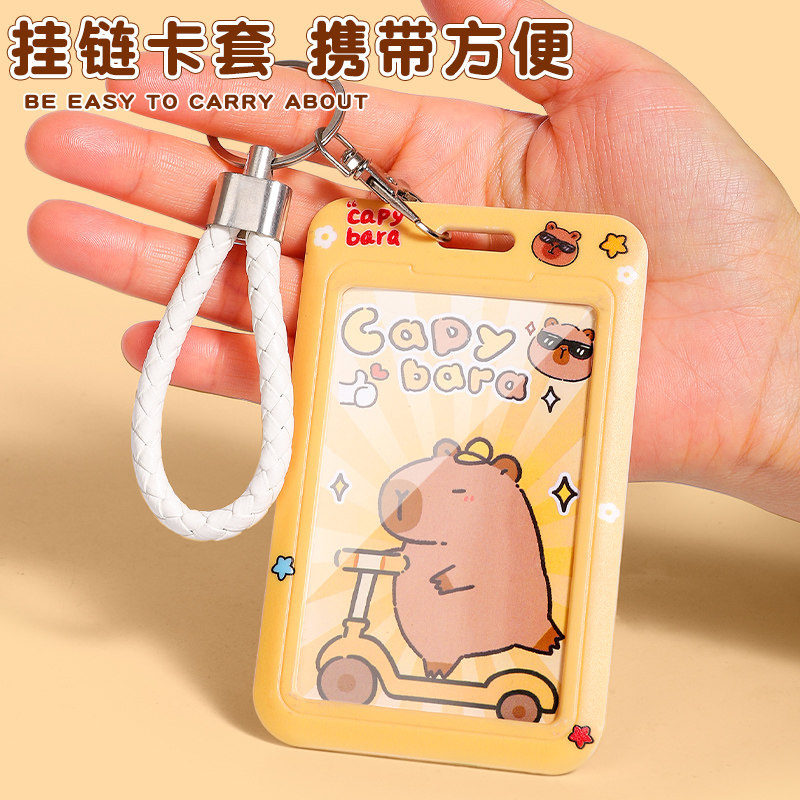 卡皮巴拉一体挂绳卡套可爱公交卡保护套学生饭卡校园门禁证件厂牌门卡套钥匙扣小学生儿童伸缩卡套校牌保护套