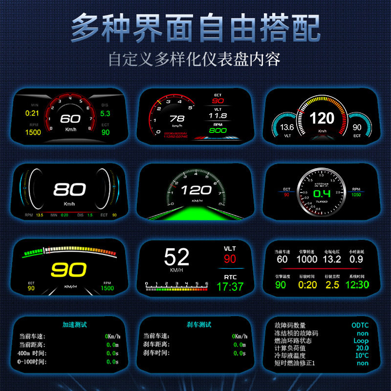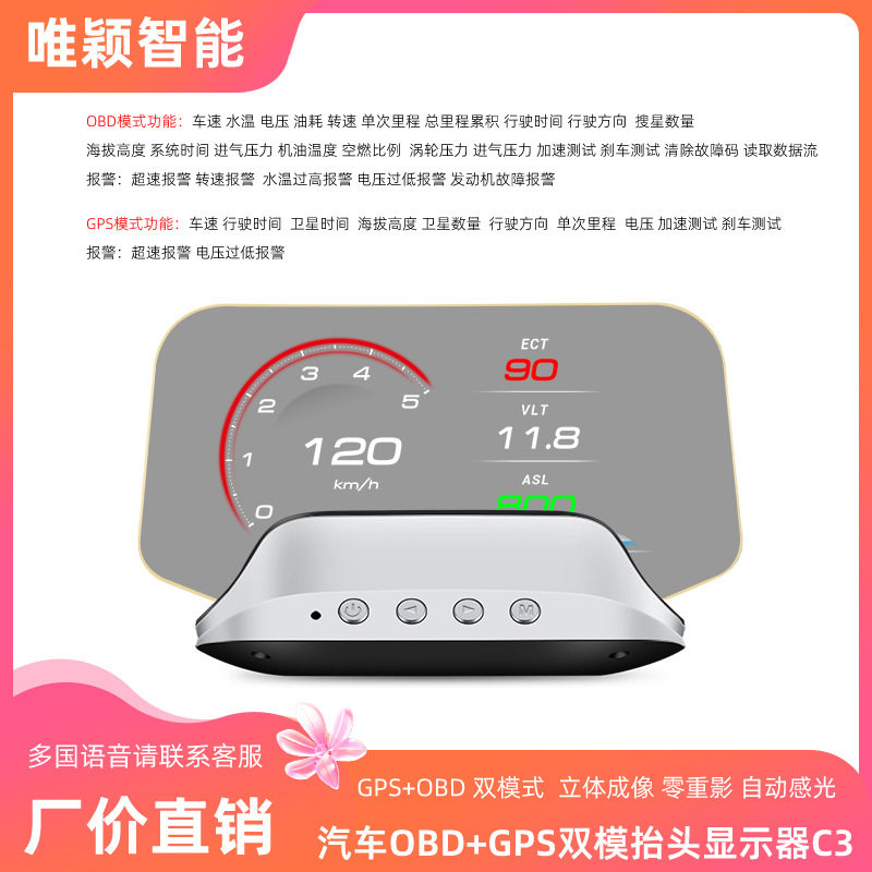 唯颖车载显示屏汽车obd2速度GPS投影仪无重影便携高清抬头显示器