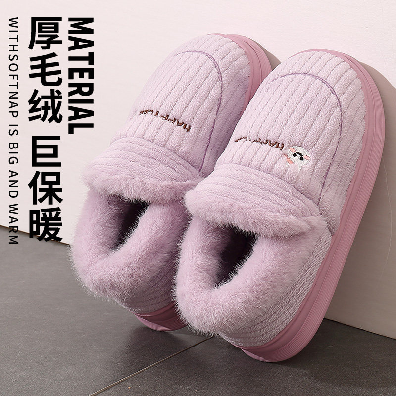 朴西棉拖鞋女士秋冬季厚底简约保暖室内居家用软底防滑情侣棉拖男