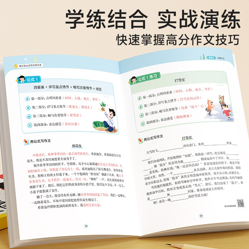 时光学 用万能公式写优秀作文小学生作文满分公式公式法训练二三四五六年级1-6万能模板写作技巧训练素材人教版优美句子答题模板
