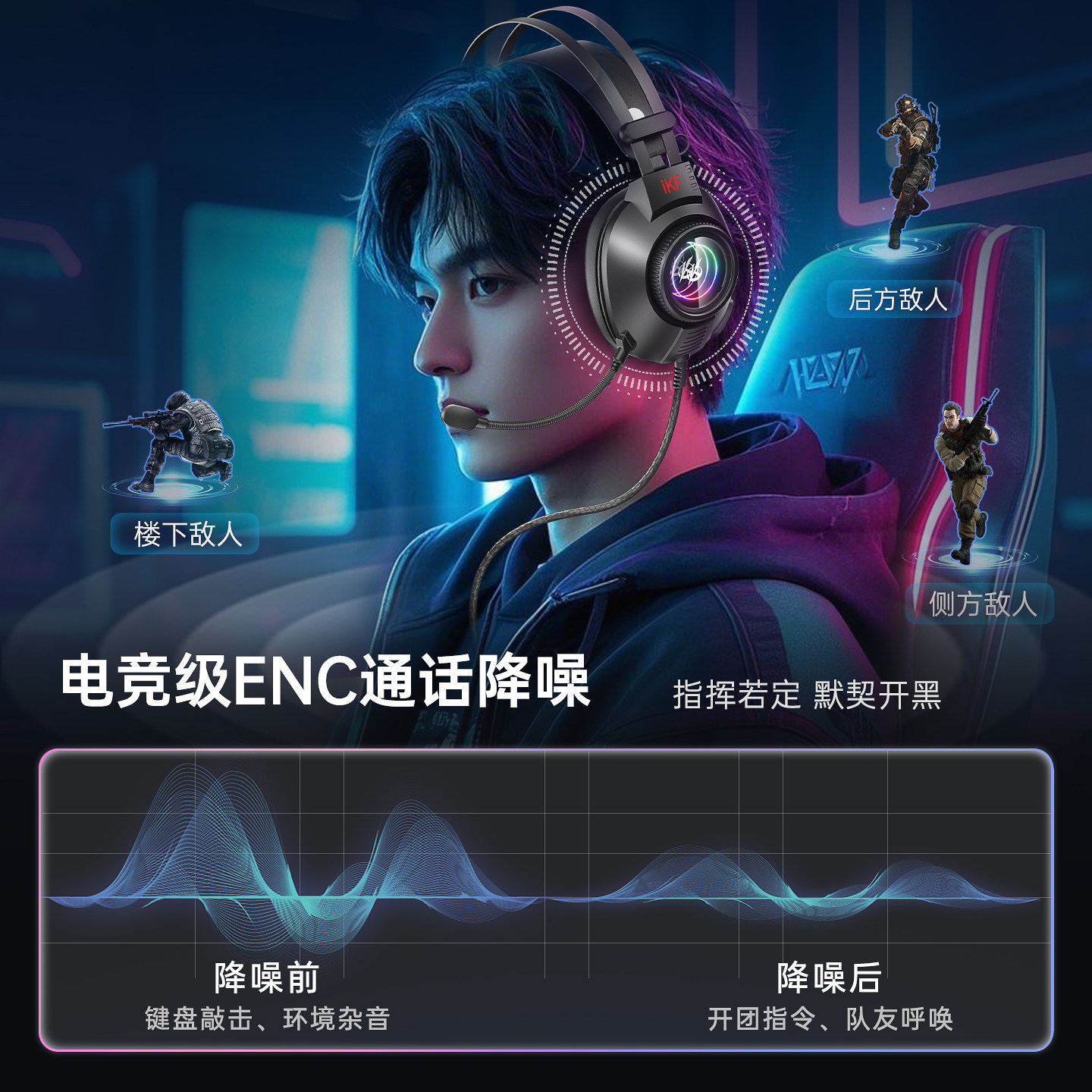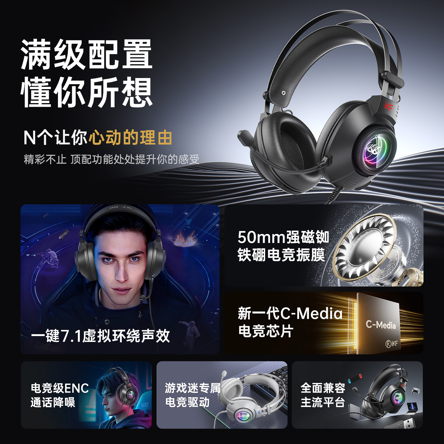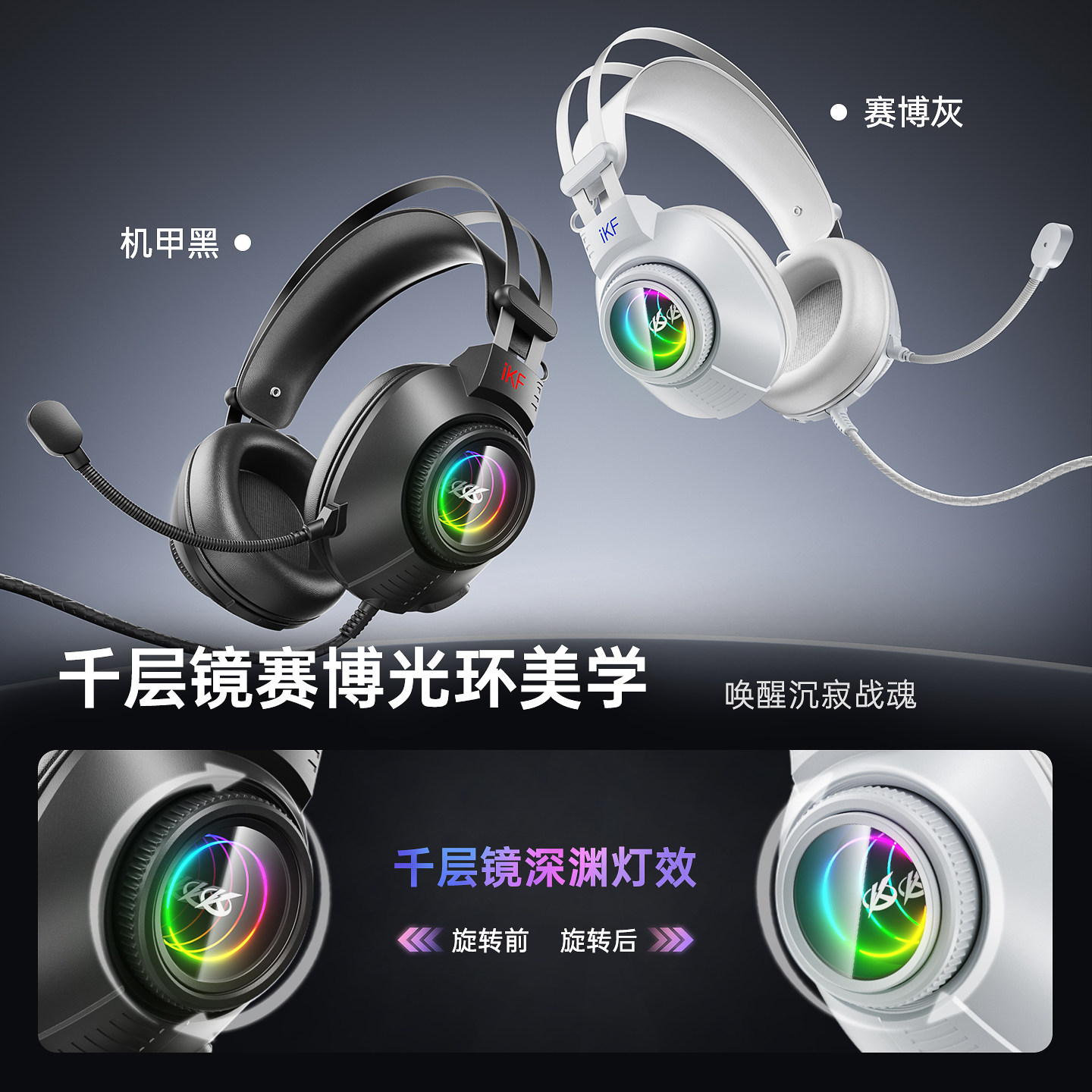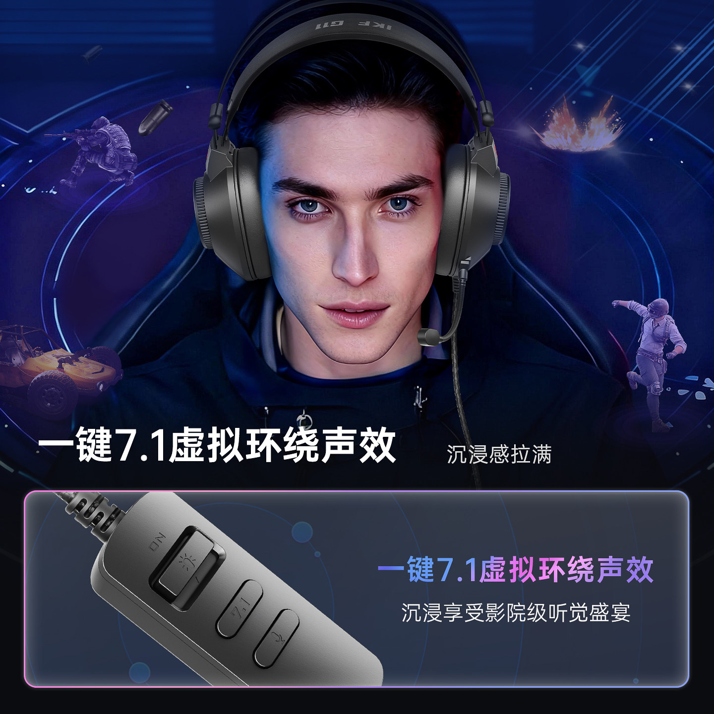 iKF G11有线游戏电竞头戴耳机usb7.1声道带麦RGB灯三角洲无畏契约