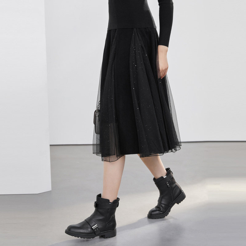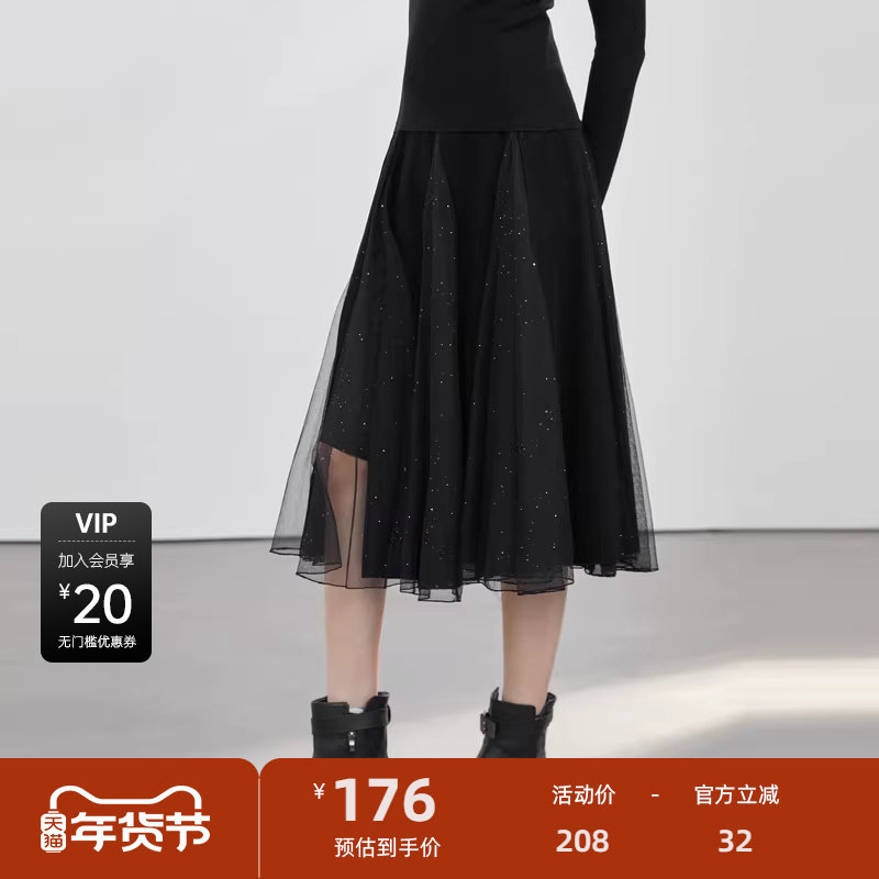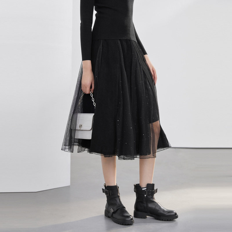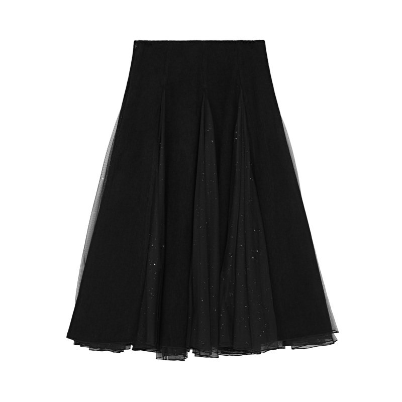 A字长裙 网纱拼接 不规则