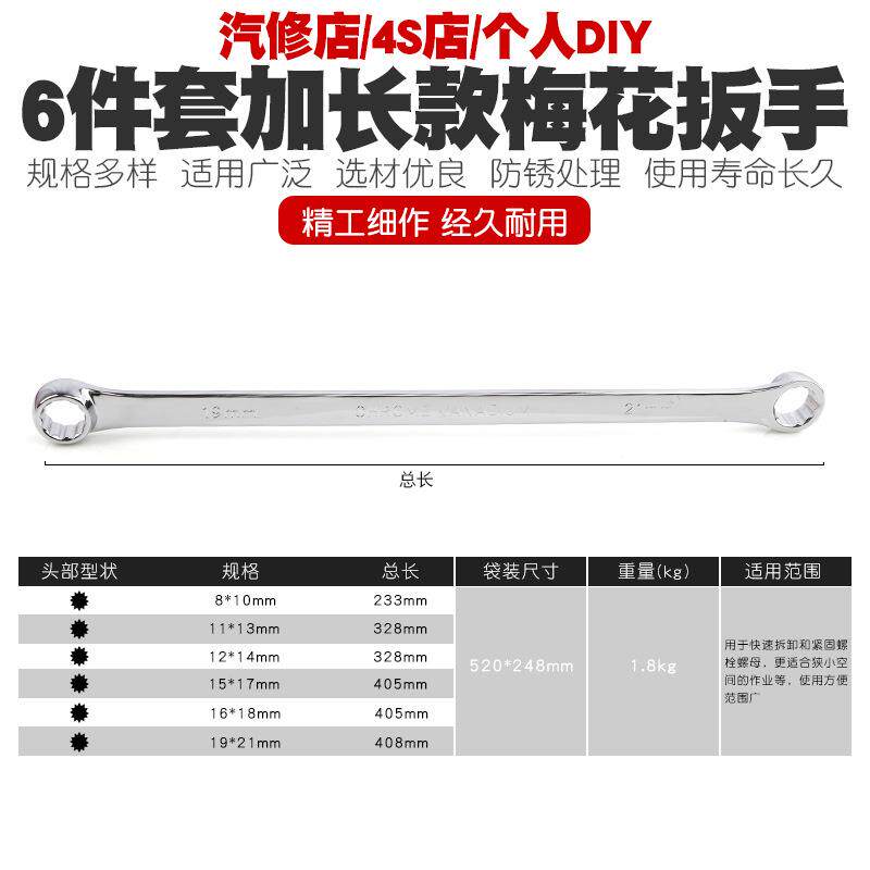 工业级多功能加长双头两用梅花航空扳手四轮定位扳手维修工具套装