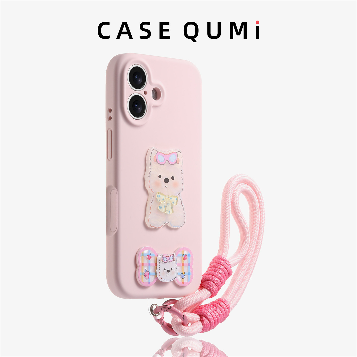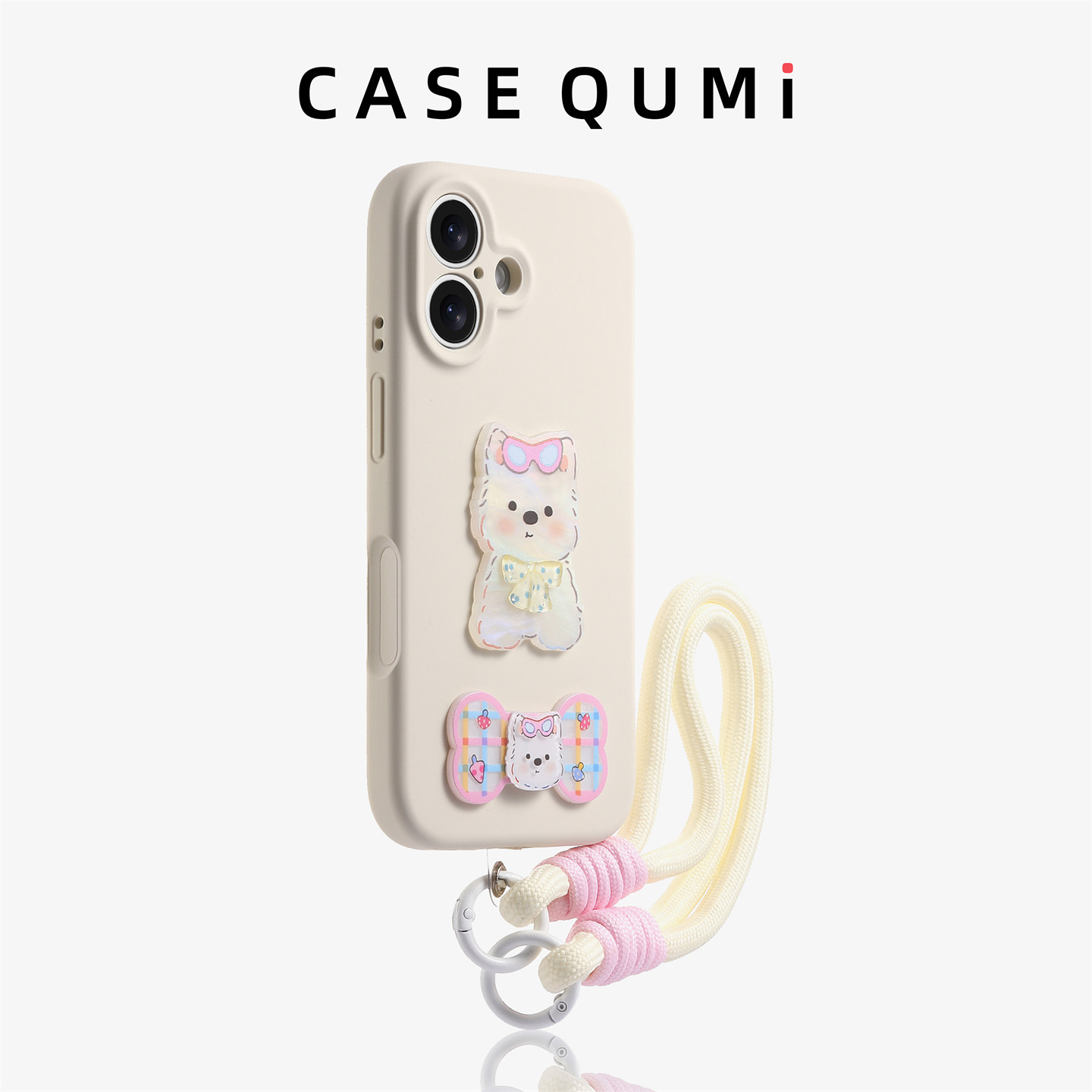奶黄色液态眼镜狗带挂绳适用苹果16手机壳新款苹果17promax套iphone16pro防摔17air硅胶15全包13小众14外壳12