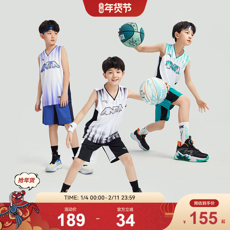 安踏儿童装男童套装夏装速干篮球服体育课透气背心短裤两件套时尚