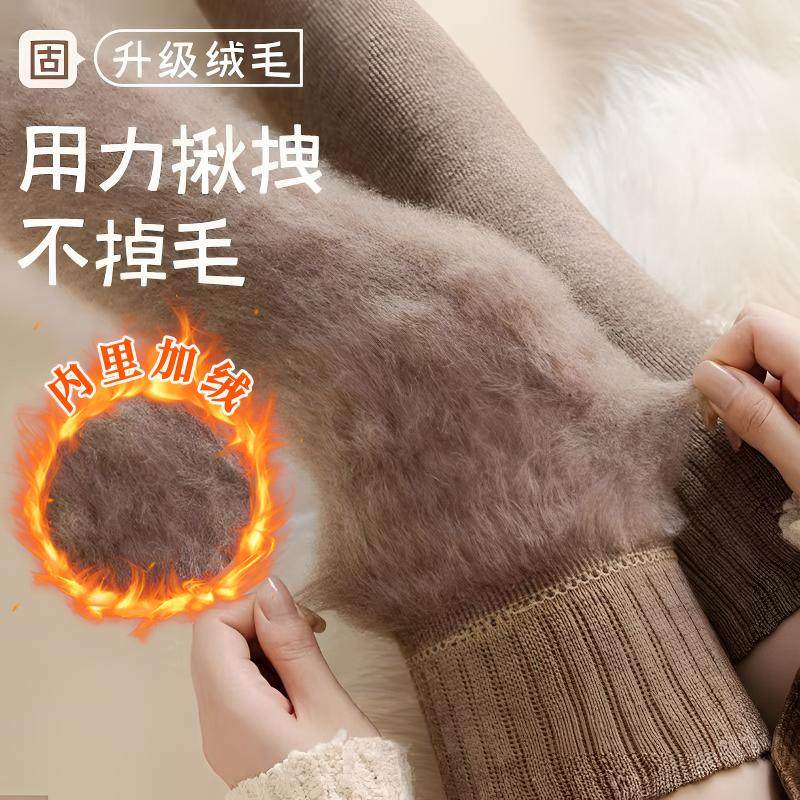 羊毛过膝袜女秋冬款羊绒长筒袜加绒加厚保暖大码孕妇坐月子大腿袜