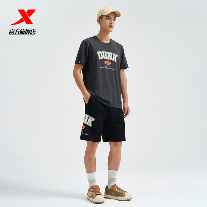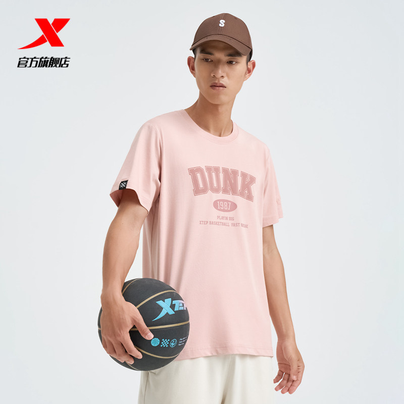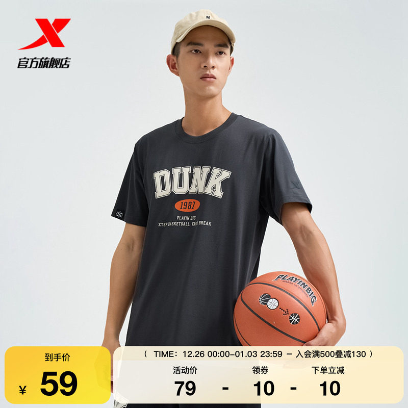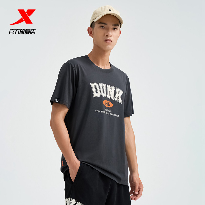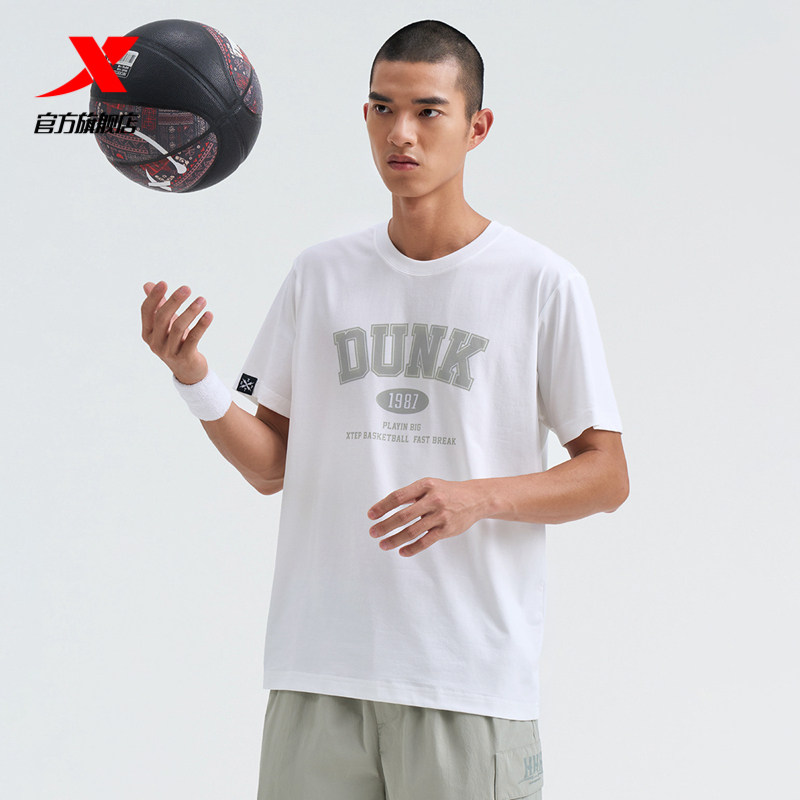 特步篮球短袖男2025夏季官方印花宽松透气运动半袖976229010011