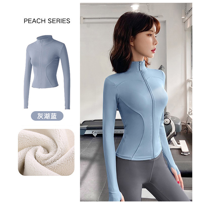 瑜伽服外套女加绒加厚立领拉链开衫骑行运动上衣长袖秋冬健身白色