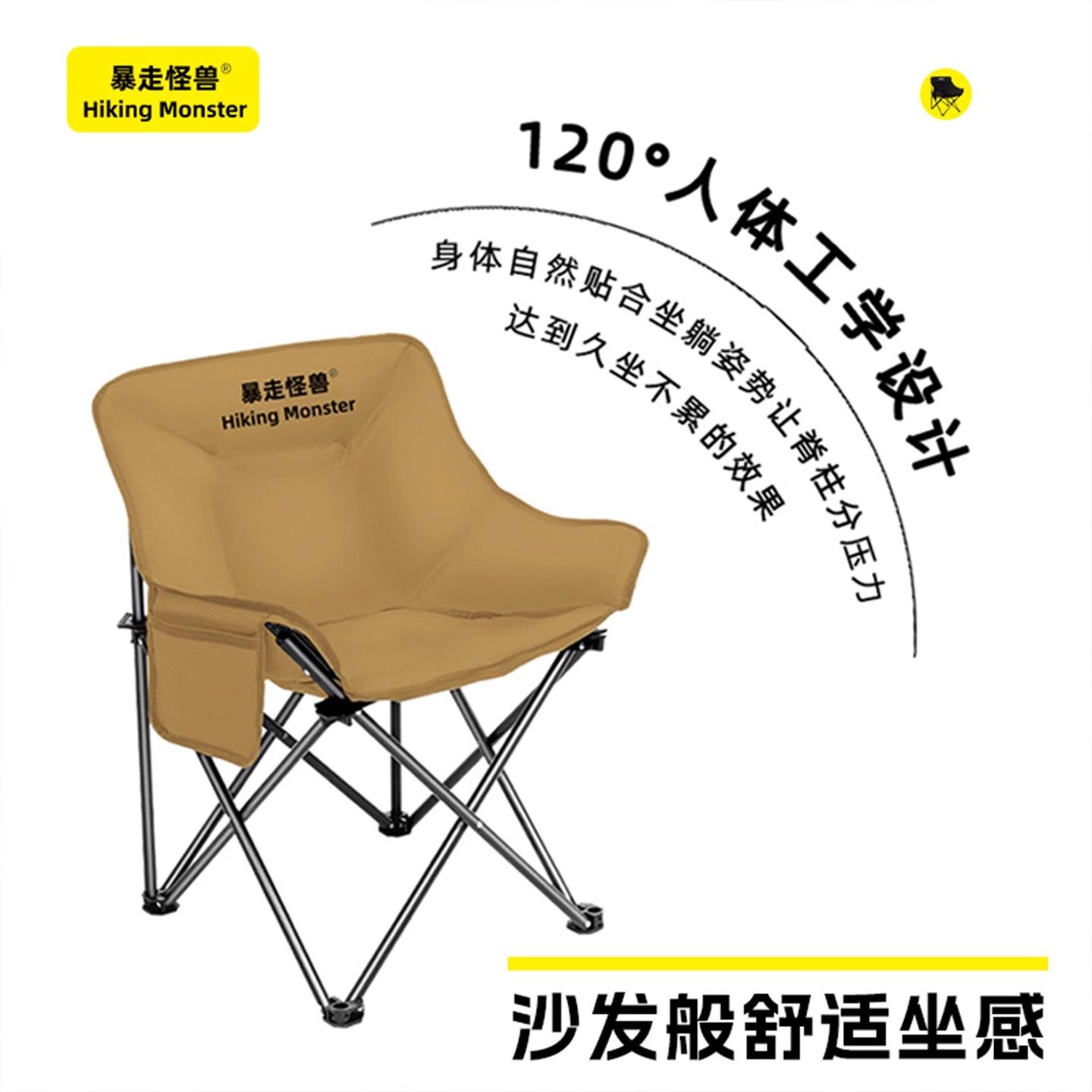 暴走怪兽户外便携折叠椅钓鱼椅加棉月亮椅露营座椅铝合金马扎绿色