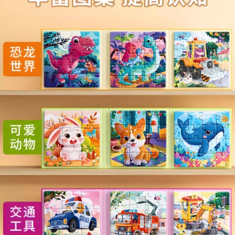 恐龙儿童拼图3到6岁益智磁力拼图2到3岁益智平图磁吸积木儿童玩具