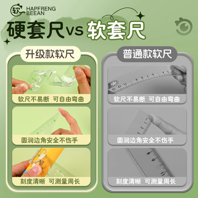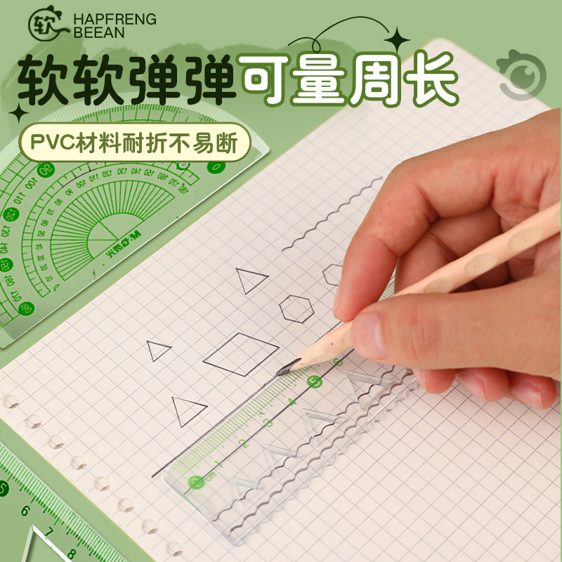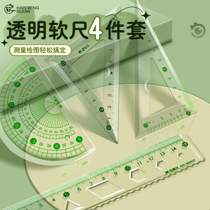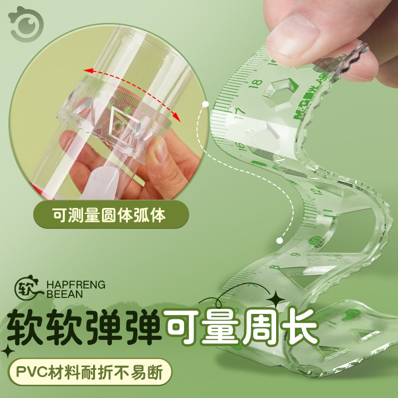 晨光护眼软套尺小学生专用软尺套装防近视护眼20cm套尺四件套15cm透明软直尺带波浪线可弯曲四件套尺子套装