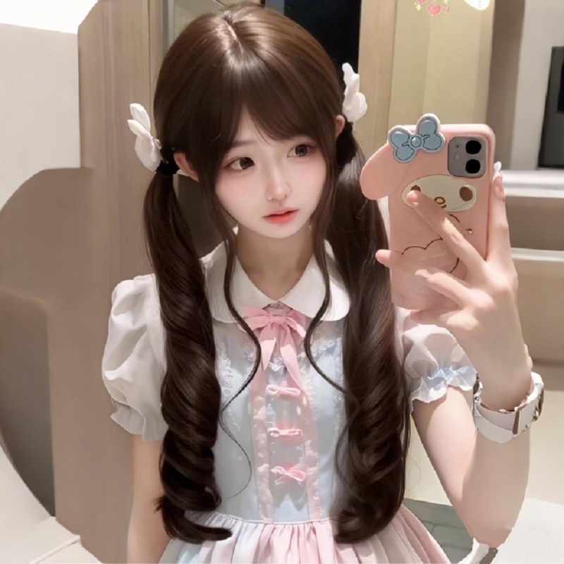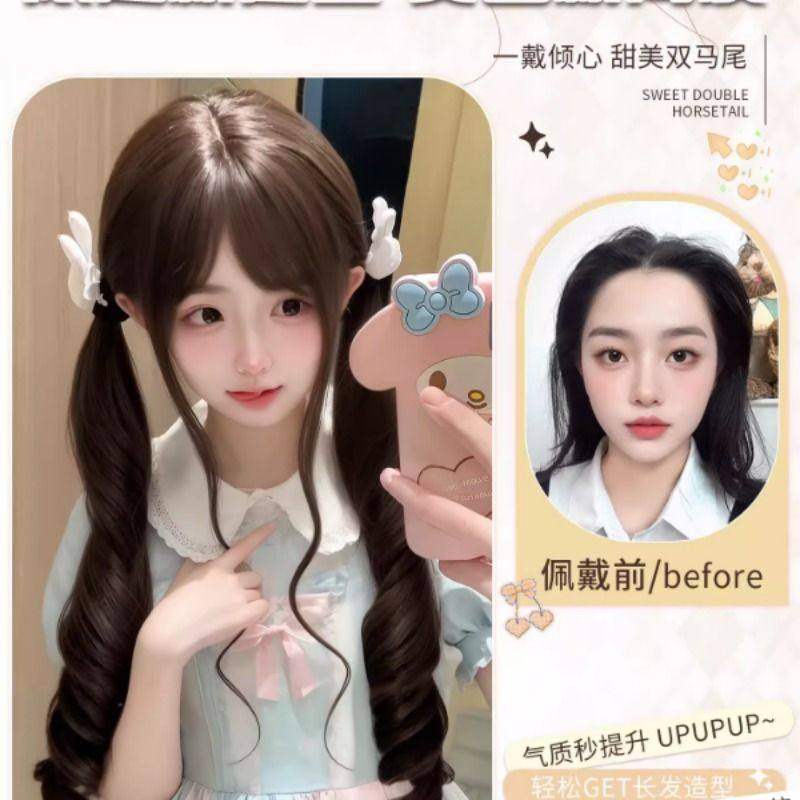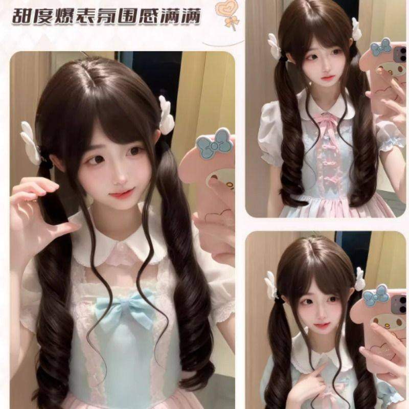心动循环lolita假发女双马尾长卷发扎好罗马卷甜妹全头套刘海