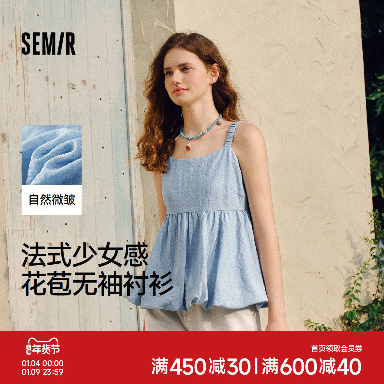 森马衬衫女无袖设计感蝴蝶结可爱2025夏新款花苞肌理上衣吊带法式