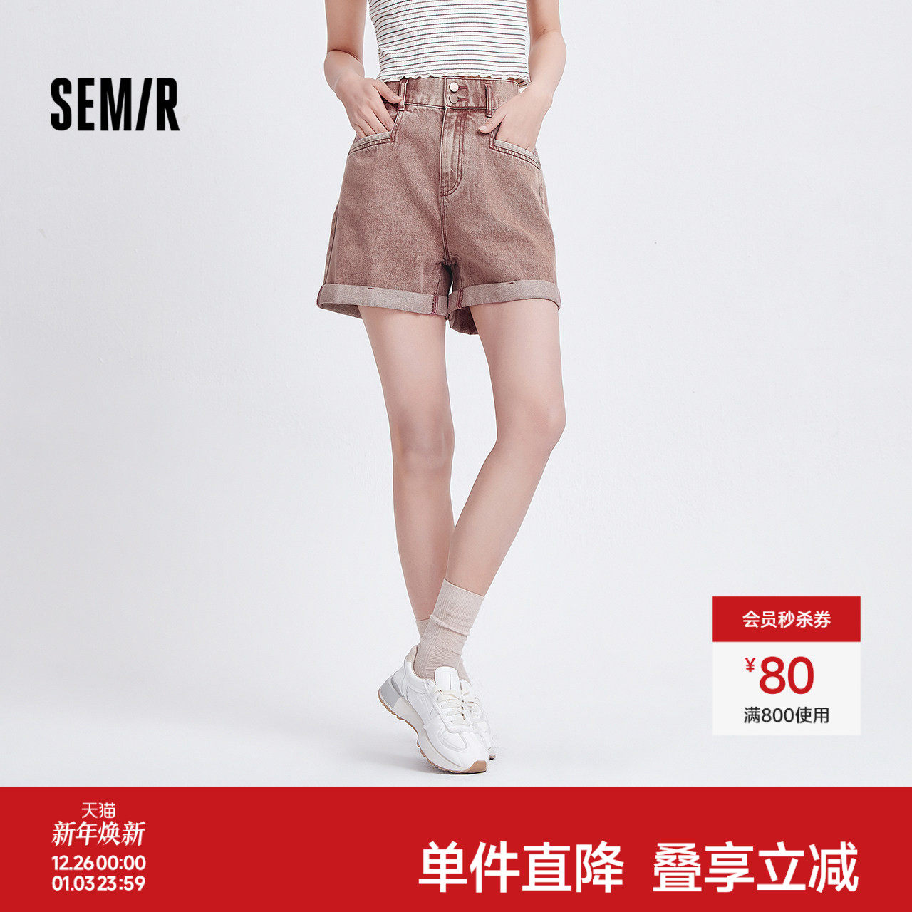 森马牛仔裤女时尚潮流做旧2025夏季凉感宽松翻边短裤粉色潮流洗水