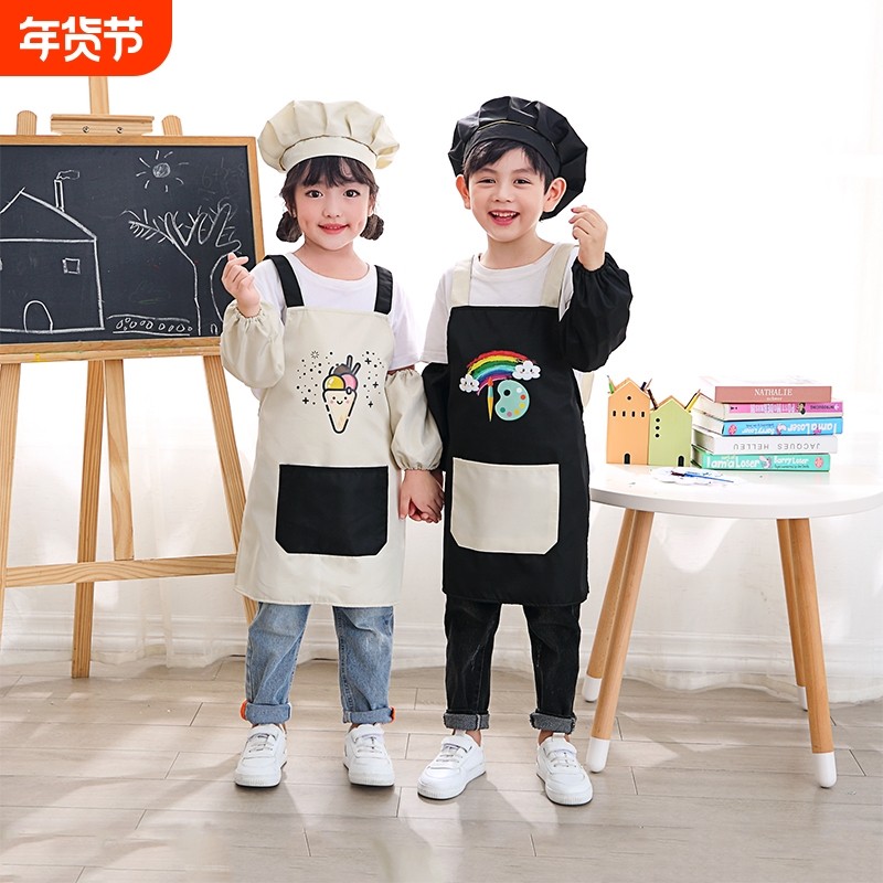 儿童画画防水幼儿园长袖罩衣美术反穿衣绘画围裙宝宝吃饭围兜防油