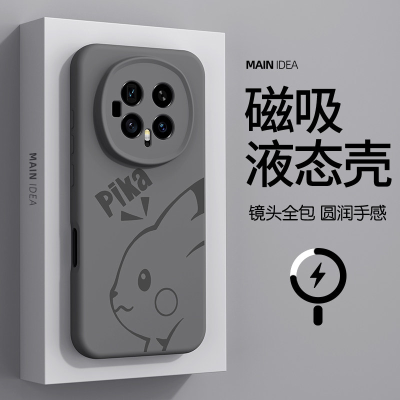 适用荣耀magic8pro手机壳honor新款液态硅胶8por宝可梦皮卡丘BKQ-AN80简约好看magic7pro防摔外壳M8防摔散热