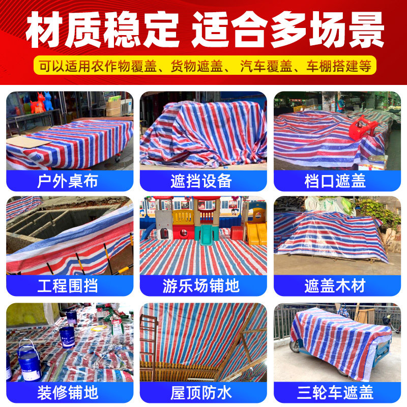加厚彩条布防水防晒遮阳防雨布三色布户外塑料花油布篷布屋顶隔热